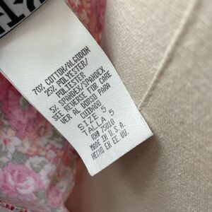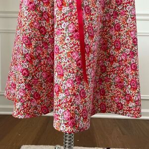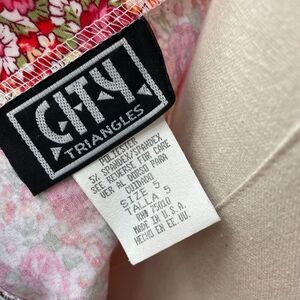 90s City Triangle floral spaghetti strap fit and flare sundress with back zip closure and attached narrow grssgrain ribbon waist tie. Feminine and sweet. Cotton, polyester and spandex blend. Made in the USA. Size 5. Laying flat measures approximately 14 inches straight across the waist, 16 inches armpit to armpit with darting to accommodate cup size and 39 inches shoulder to hem. The floral is in shades of pink, white and orange with green. Perfect for the current garden party trend, date night or special occasion. I am listing this as a size small based on the measurements, but please double check to ensure the proper fit for you.