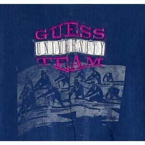 Vintage Guess university team women’s size large navy blue with a good fade Sweatshirt navy Y2K 90s. Good preowned condition, has a couple small white spots maybe paint.