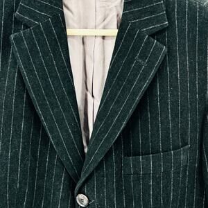 Excellent condition. Thick, high-quality construction. Fully lined. Three-button front. Flap pockets. 72% cotton, 28% polyester. Made in United States of America.