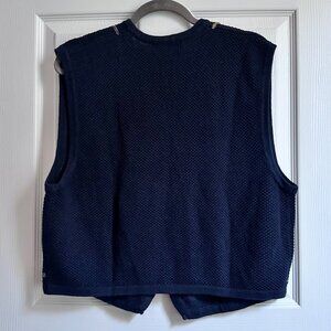 Vintage 90s Koret Petites Large Navy Blue Knit Sweater Vest w Floral Embroidery