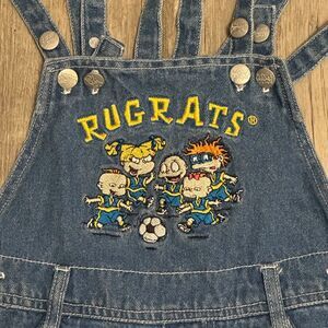 Vintage 90s Nickelodeon Rugrats Soccer Denim Overalls Size 6 Kids