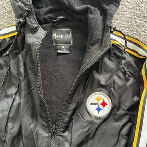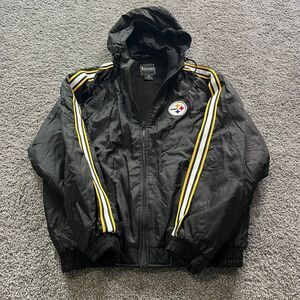 Vintage 90s Pittsburgh Steelers Full Zip Puffer Parka Jacket Big Logo Size M