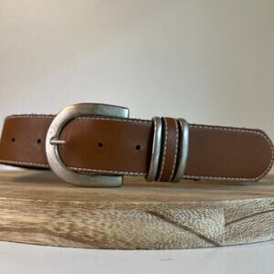 Vintage 90s Tan Vegan Leather Wide Silver Buckle Belt Size XS/S