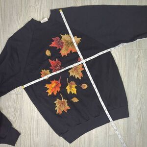 Vintage 90s Tultex Maximum Sweats Black Floral Fall Leaves Crewneck Sweater L