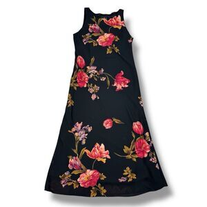 Vintage 90s Positive Attitude Floral Maxi Slip Dress Black Medium Glam Grunge