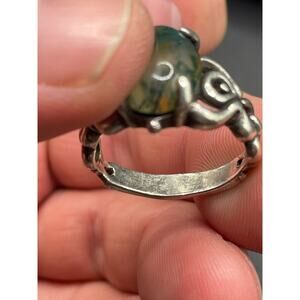 Vintage 925 Sterling Silver Moss Agate Gemstone Ornate Jewelry Ring Sz 6 6.45g