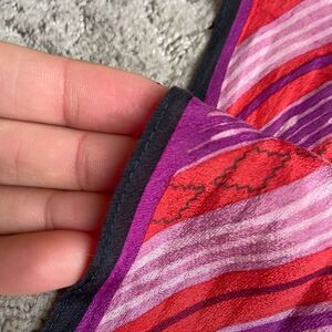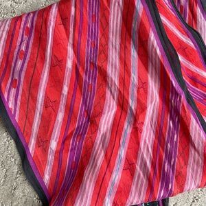 Vintage Anne Klein Silk Parallegram Neck Scarf w/ Striped Southwestern Style Pat