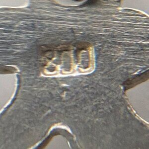 800 Silver has been acid tested to confirm metal purity and gently cleaned using a soft polishing cloth, some patina may be remaining.