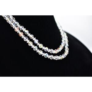 Vintage Aurora Borealis Crystal Double Strand Beaded Collar Necklace Shiny BinA