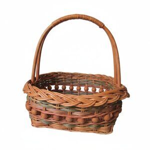 Bring a touch of rustic charm to your home with this beautiful vintage beaded wicker basket. Handcrafted with a lovely woven design and unique beaded accents, this basket is a versatile piece perfect for farmhouse decor, cottagecore aesthetics, or a cozy French country kitchen.