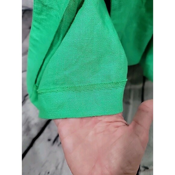 This vintage Berwin & Wolff dress is a stunning piece that will make you stand out at any party. Made of 100% linen, this maxi dress features a beautiful green color with ethnic/peasant details with pockets, perfect for a folk lover. This dress has a size of 42 measurements pit to pit 38" legnth 54" waist 36". It is a great addition to any vintage clothing collection and perfect for those who love unique styles. The dress is perfect for any occasion, whether it's a formal event or a casual day out. The bottom hem has come undone all around the back. It could be fix. There is a small snag on the back see photos.