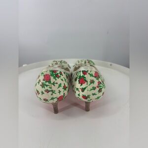 Vintage Betsey Johnson Rose Pin Up Floral Kitten Heels w/ Bow Cream Green Pink 7