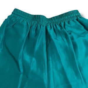 Rare vintage Bocoo 100% silk athletic tracksuit featuring vibrant hot air balloon print, teal and purple colorblocking, and bold retro styling. This two-piece set includes a zip and snap jacket with elastic cuffs and waistband, plus solid teal jogger pants with a relaxed fit and full elastic. Jacket has shoulder pads for structured vintage look. Size small and in good used condition with visible wear and markings in areas, all shown in photos. Please review images carefully and reach out with any questions.
