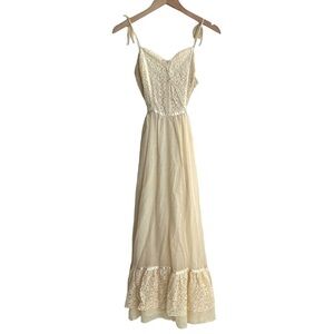 Vintage Boho Fairytale Prairie Ruffle Lace Sweetheart Neckline Maxi Dress