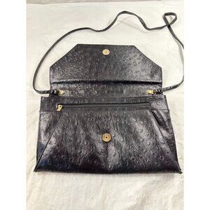 Vintage Bueno Envelope Shoulder Bag Black Faux Ostrich