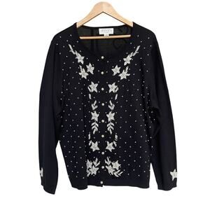 Vintage Casual Corner 2X Beaded Cardigan | Black, Pearl Buttons, Glam EUC