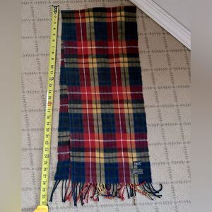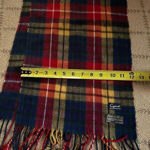 Vintage Cejon black, yellow, orange, red plaid scarf or muffler with fringe. Super soft. Excellent condition with no rips, stains, or tears