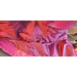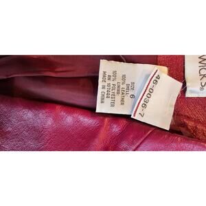 Deep Fushcia color 100% leather coat. Front flap pockets and button front. Fully lined. Sized a 6 and I estimate this is a ladies small. Please use measurements to ensure fit.