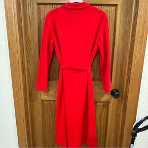 Make a bold statement in this striking vintage Cheekaberry dress, featuring a true red hue, tailored silhouette, and classic double-breasted button front. Made from a cozy, structured wool blend, this piece is as timeless as it is vibrant.