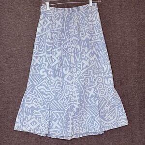 Vintage Cherokee A-Line Skirt Blue White Abstract Print Cotton USA Made Size 12