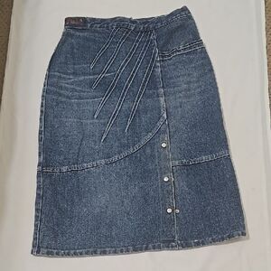 Elevate your wardrobe with this chic blue denim pencil skirt. Perfect for any occasion. please refer to photos for more details and measurements.