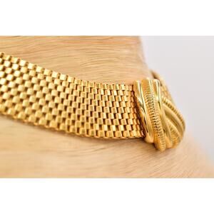 Vintage Chunky Choker Collar Necklace Heavy Thick Chain Gold Tone 1980s Bin6A