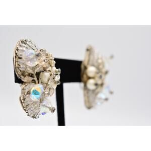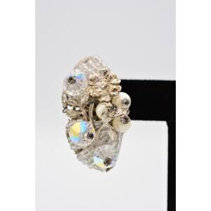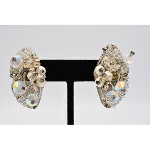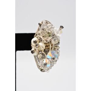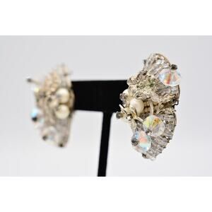 Vintage Clip Earrings Rhinestone Crystal AB Cluster Pearl Chunky 1980s BinAK