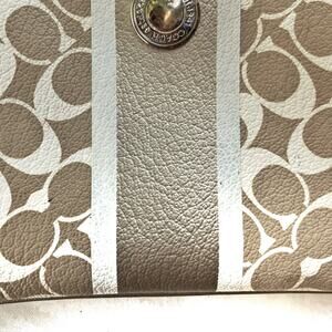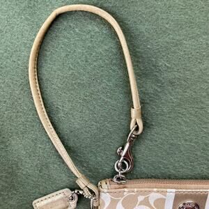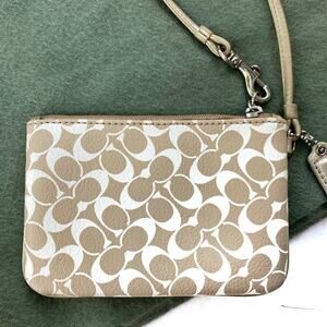 Y2K Coach wristlet, vintage Coach bag, gold cream logo pouch, mini monogram clutch, small designer purse, coated canvas wristlet, preppy Coach bag, early 2000s style, Dooney & Bourke era bag, mini essentials pouch, 2000s fashion accessory, designer wristlet, Coach signature bag, cream gold wristlet, holiday gift idea, stocking stuffer, small luxury gift, timeless designer gift, under $100 gift