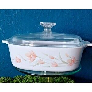 Vintage Corning Ware Peach Wildflower 2 Quart Casserole Dish A-2-B w/Lid A9C.