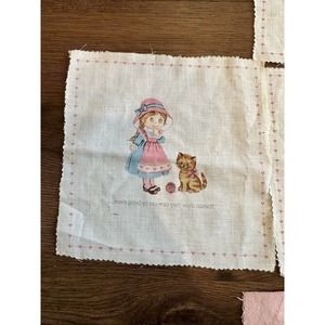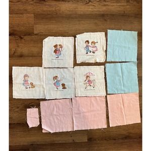 Comes with 5 squares with the children on them and two blue and three pink and a tiny pink one.