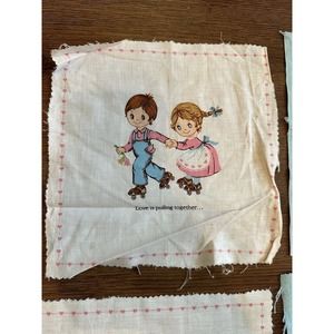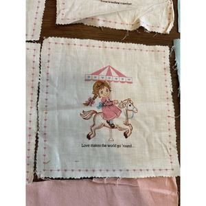 Vintage Cranston Pink Love Makes the World Go 'Round Cotton Fabric Panels Pink