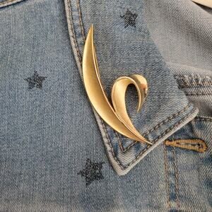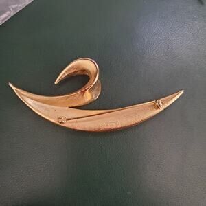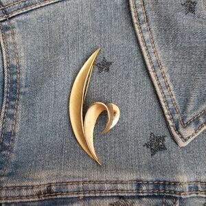 Vintage Crown Trifari Brooch Curling Leaf Brushed Gold Tone Signed 60's