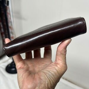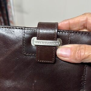 Elegant dark brown leather wallet (notepad) Features secure buckle closure. Cutter & Buck branding on clasp. Vintage see all photos as they are part of description