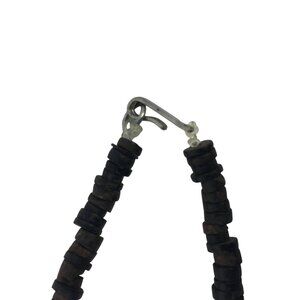 Vintage Bohemian Dark and Light Brown Wood Beads Necklace with Mini Metal Cowbell in the middle