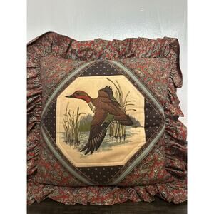 Vintage Decorative Throw Pillow Duck In Flight Ruffled Edge Paisley Pattern