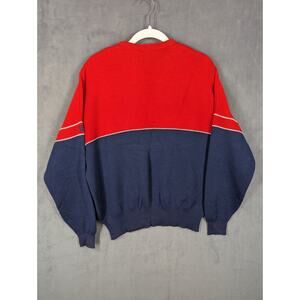 Vintage Demetre Mens Ski Sweater Size L Large 100% Pure Virgin Wool Red Blue