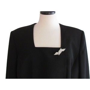 VINTAGE DESIGNER SOLINI NEW YORK BLACK SQUARE NECKLINE PADDED SHOULDERS BROOCH DETAIL LONG SLEEVE WITH FOX FUR CUFFS SNAPS IN FRONT FULLY LINED JACKET