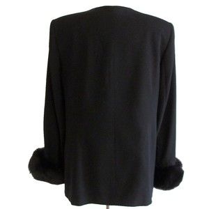 TAGS DESIGNER BLACK JACKET WITH FOX FUR CUFFS' EVENING WORK PREPPY VINTAGE DESIGNER JACKET
