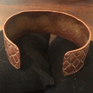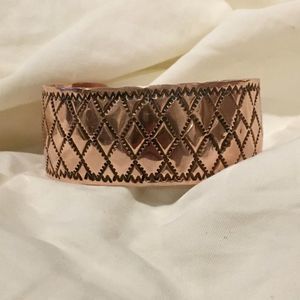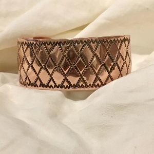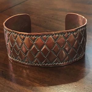 Vintage Copper Cuff Bracelet with Diamond Pattern