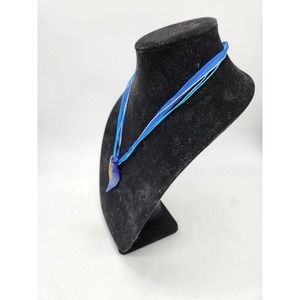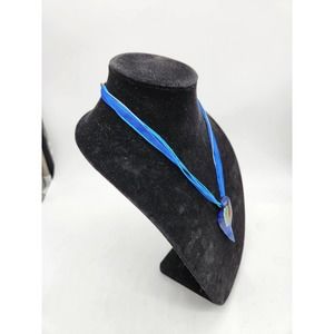 Vintage Dichroic Glass pendant on 19" Blue Ribbon and Chain Combo