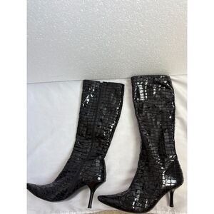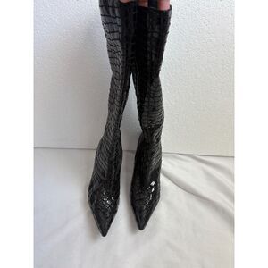 Vintage Diego Di Lucca 3” Stiletto Knee High Boots Pointed Toe Patent Snake 8