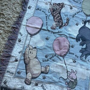 Vintage Disney Classic Winnie the Pooh Cotton Woven Tapestry Throw Blanket Snag on top as pictured. Hard to see