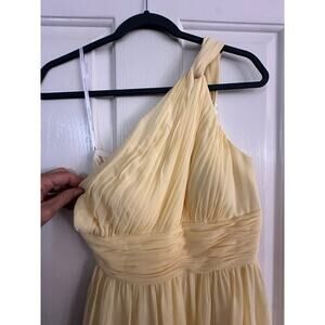 Vintage Donna Morgan butter Yellow Rhea One-Shoulder Chiffon Dress Size 4