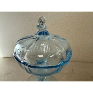 Vintage Empoli Italian Blue Glass Compote – Lidded Pedestal Candy Dish MCM