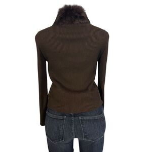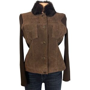 Vintage Escapade Suede Knit with Rabbit Fur Trim Jacket in size Petite Large.