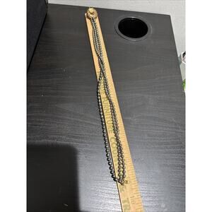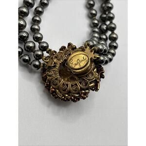 Vintage Eugene Triple Strand Faux Bk Pearl Necklace w/ Rhinestone Flower Pendant