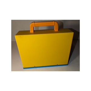 "Description: This is a child-size TV that plays 2 songs as 2 different picture stories scroll across the TV screen. The TV has a large knob that winds the music box and a smaller "clicking" pretend channel selector. When wound, the music box TV plays "London Bridge" and "Row, Row, Row Your Boat" as the pictures scroll by. Designed for children ages 2 to 5 years old."