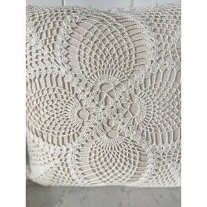 This Vintage Floral Hand Crochet Lace Cushion Cover Pillowcase is a square-shaped pillow cover made of 100% cotton with a beige color and floral pattern. It has a vintage/retro style and features a zip closure. Perfect for adding a touch of floral charm to various rooms such as the bedroom, living room, or patio, this 14"x14" pillow cover is ideal for both indoor and outdoor use, making it versatile for different decor themes in various spaces like the office, porch, or playroom. Designed with a farmhouse and garden theme, this cushion cover is a stylish and charming addition to any home.