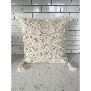 Vintage Floral Hand Crochet Lace Cushion Cover Pillowcase For Sofa Bed 14"x14"