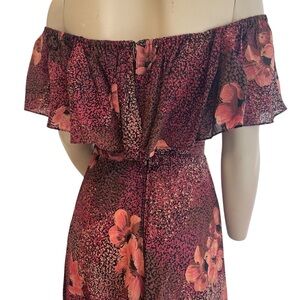 Vintage Floral Ruffled off the shoulder red and black midi dress Women’s Size 6